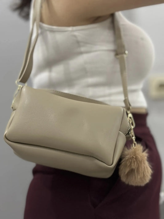 Kadın Yumuşak Dokulu Mini Omuz Çantası – Bej