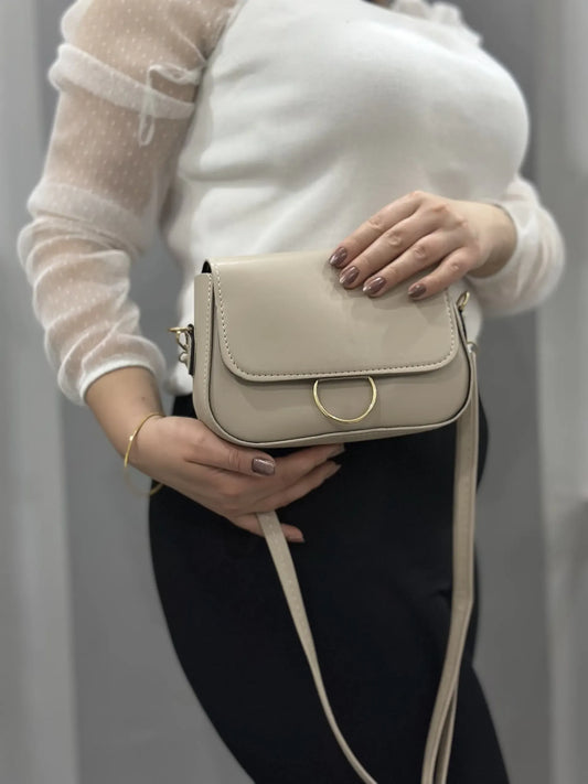 Gold Halka Detaylı Şık Çapraz Çanta - Minimal ve Zarif | Bej Rengi