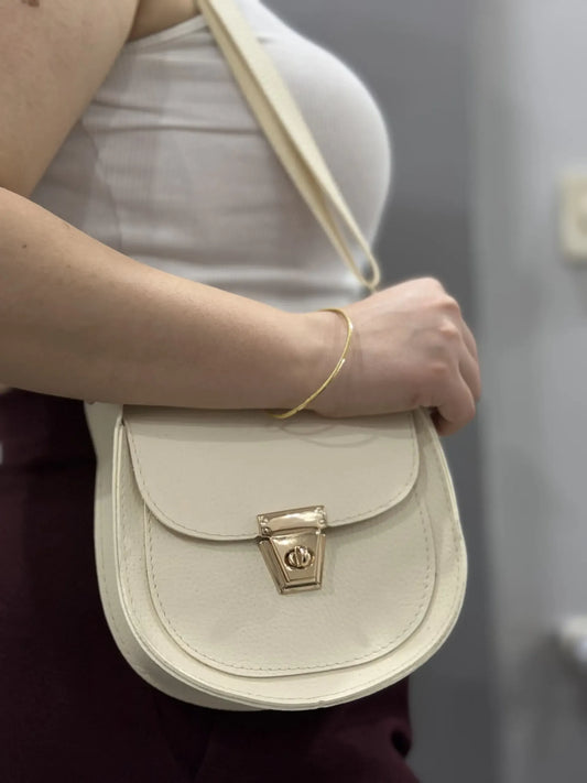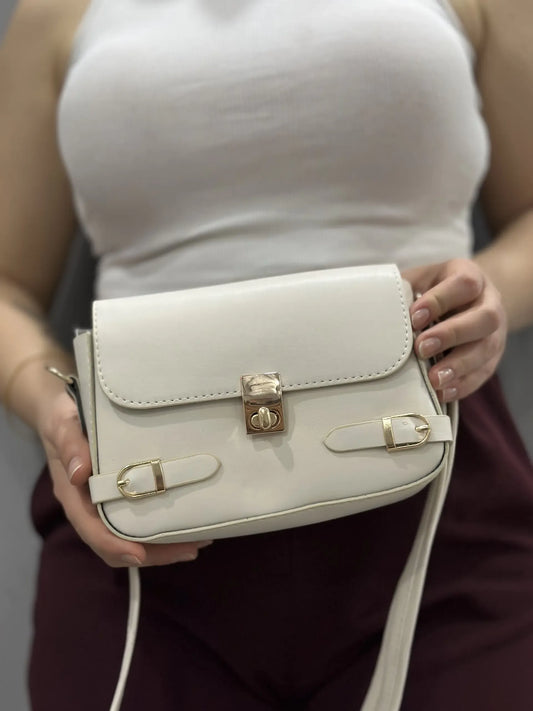 Tokalı Kapaklı Çapraz Çanta - Günlük Şıklık ve Kalite | Bej/Krem Rengi
