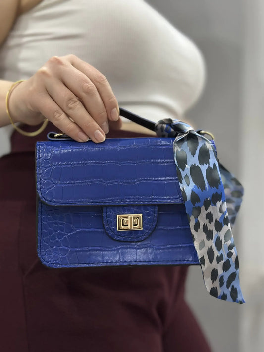 Kadın Kroko Desen Mini El Çantası – Mavi