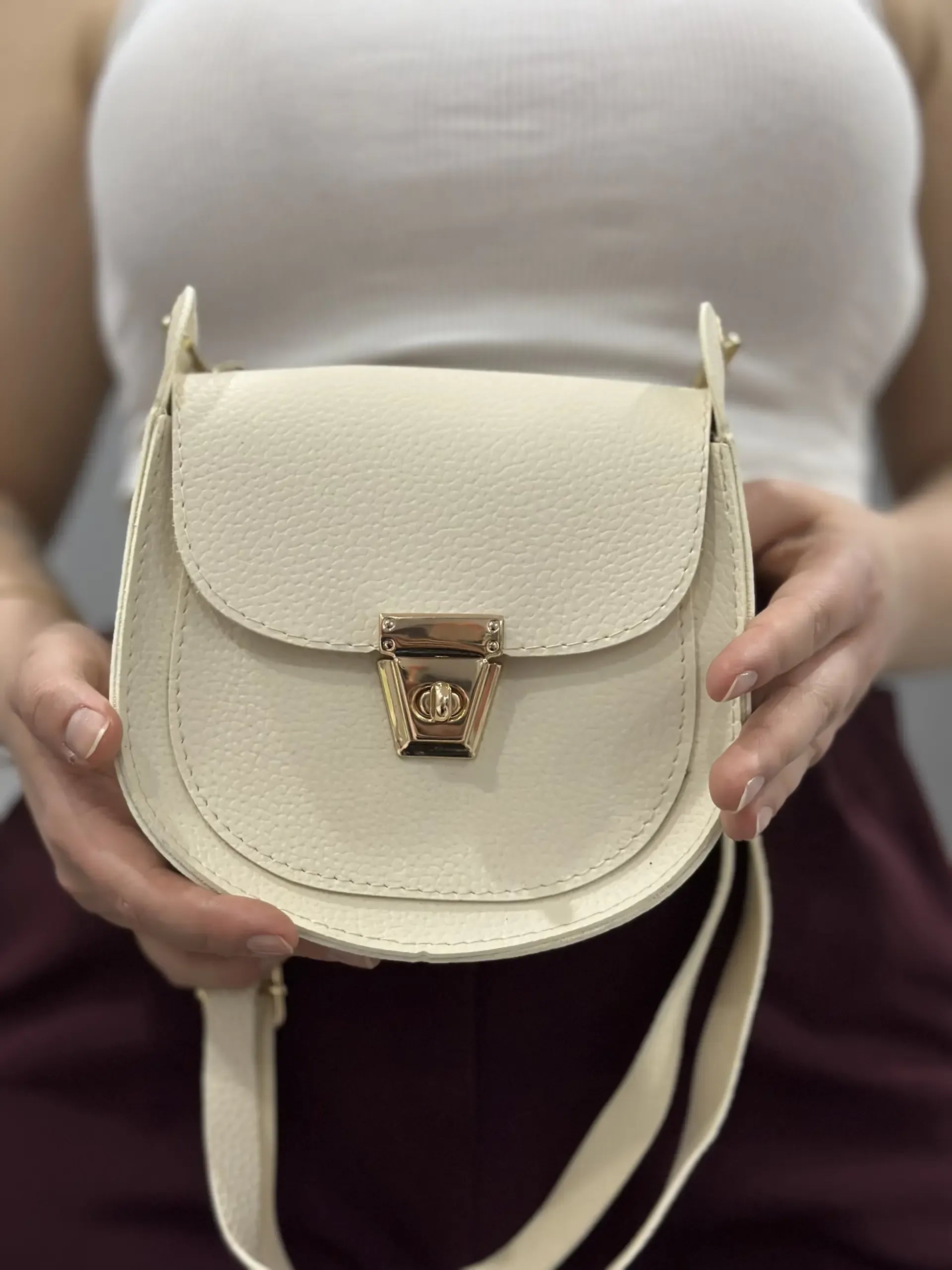 Bu çanta, ofis şıklığından hafta sonu kahvelerine kadar her ortamda stilinizi bir üst seviyeye taşır. Özellikle minimal ve düz renkli kombinlerde, altın rengi tokasıyla dikkatleri üzerinize çekecek harika bir odak noktası oluşturur.