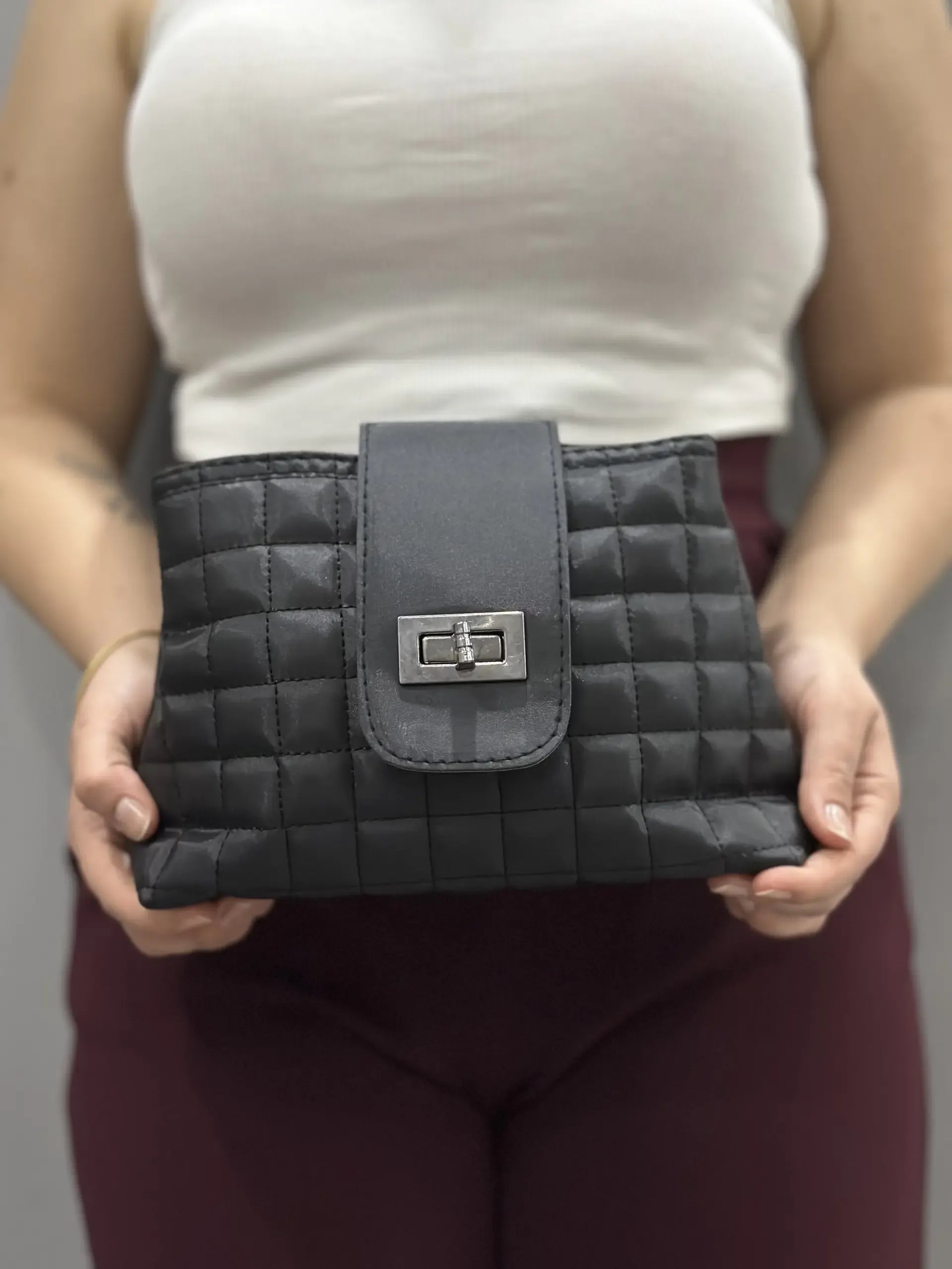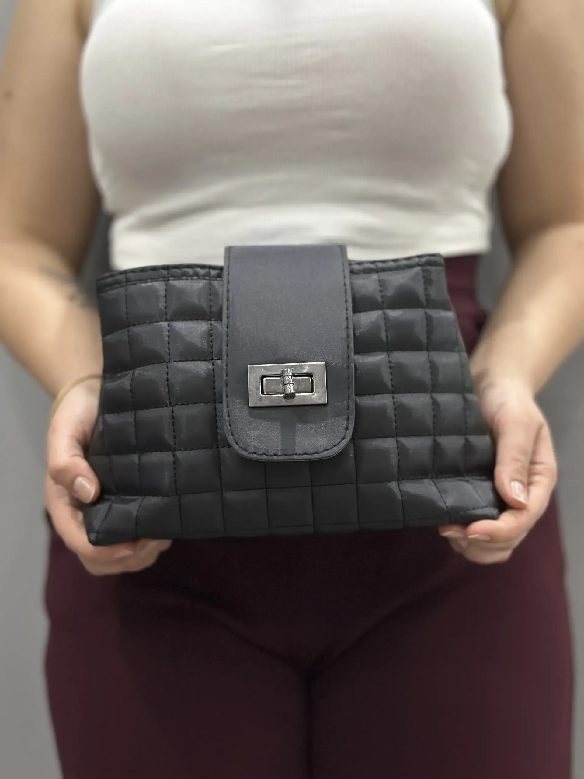 Bu kapitone detaylı çanta, modern ve dinamik bir görünüm arayanlar için ideal. Trend kare kapitone deseni, çantaya hacimli ve lüks bir hava katarken, ön kısımdaki parlak gümüş tonlarında metal kilit ise sofistike bir odak noktası oluşturuyor. Hem el çantası (clutch) hem de çapraz çanta olarak kullanılabilen bu model, gece ve gündüz kombinlerinize çarpıcı bir tarz katacak.